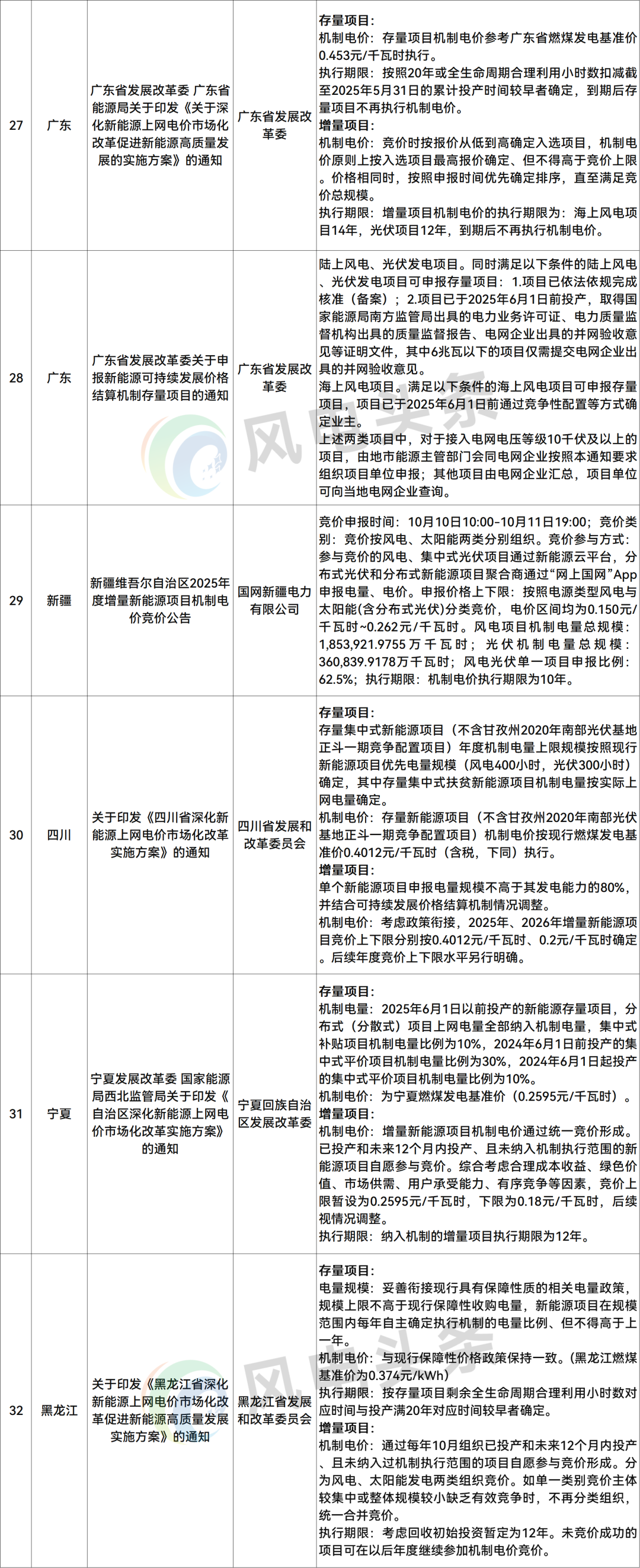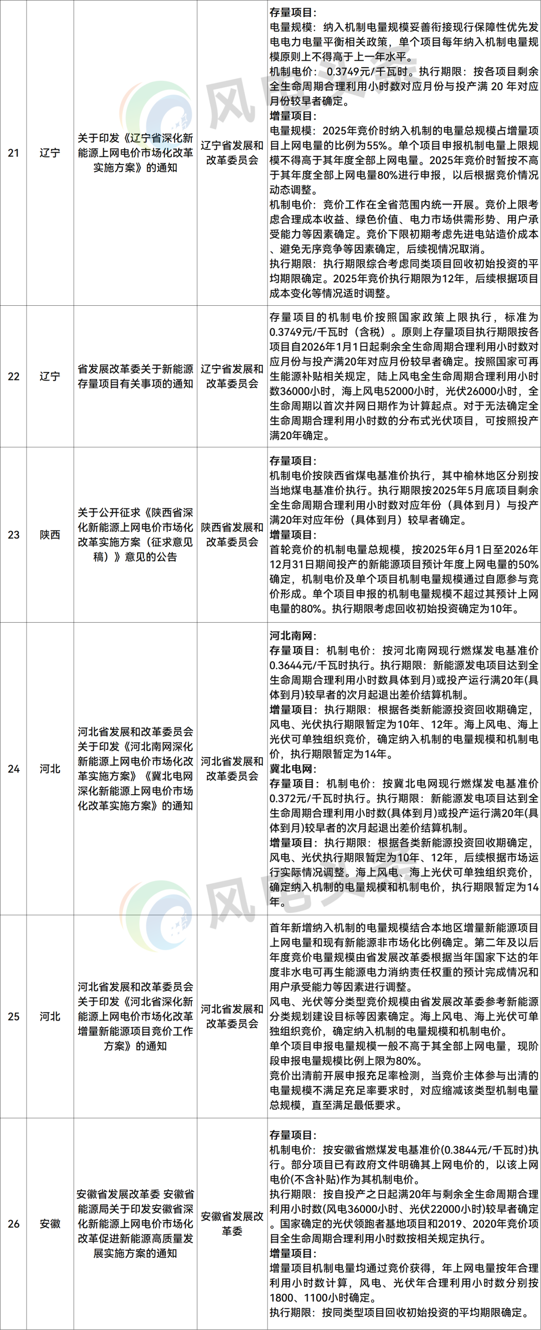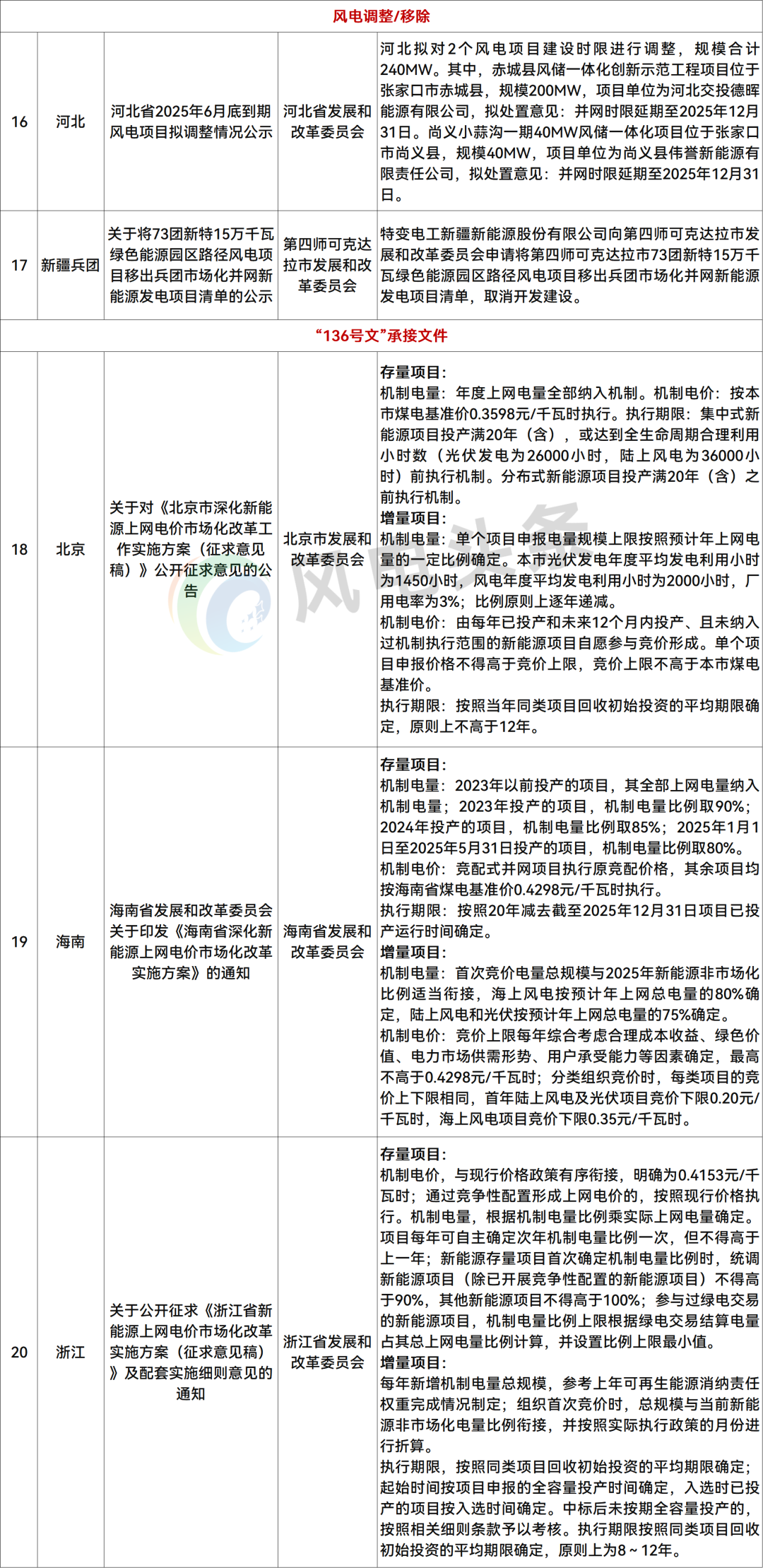 风电调整/移除:2条,河北、新疆兵团。