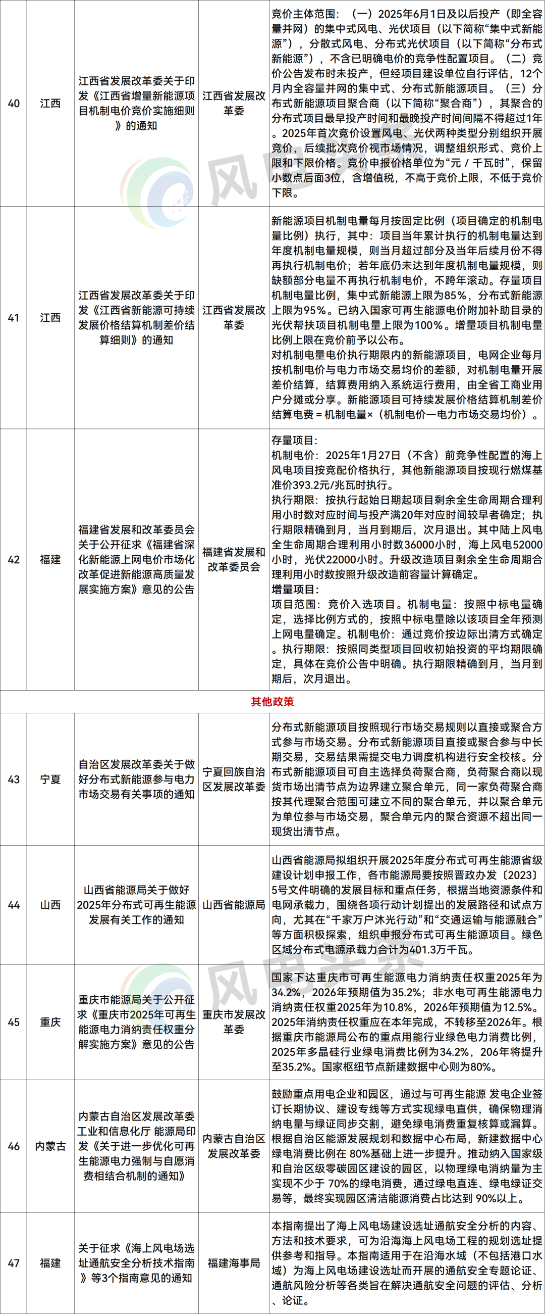 宁夏、山西、重庆等5个地方下发相关文件。山西发布关于做好2025年分布式可再生能源发展有关工作的通知;宁夏发布关于做好分布式新能源参与电力市场交易有关事项的通知;福建就《海上风电场选址通航安全分析技术指南》征求意见。