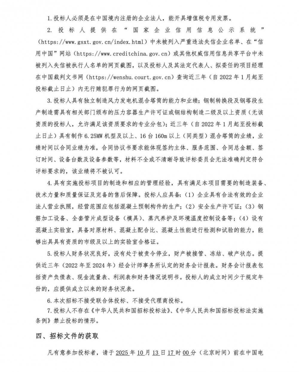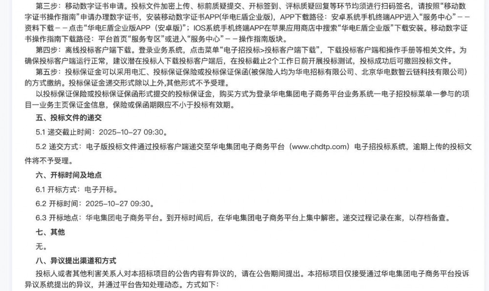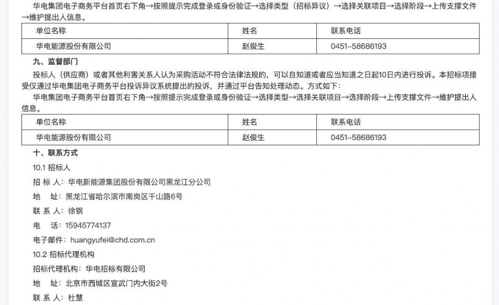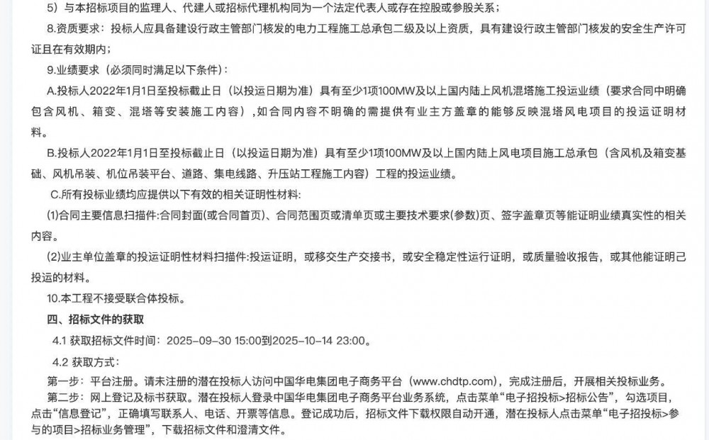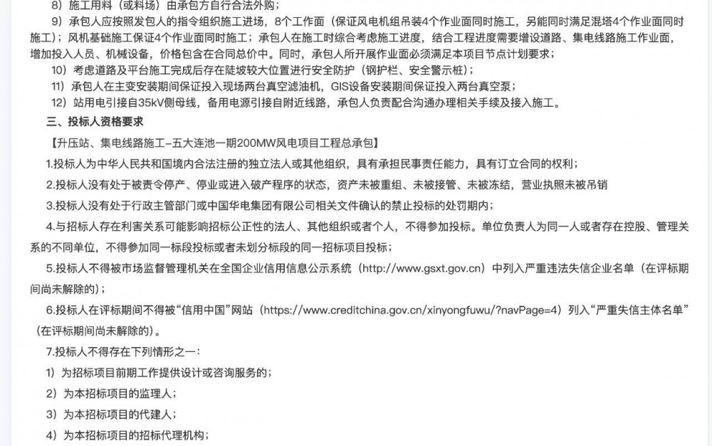 三个项目中,规模最大的是黑龙江华电黑河五大连池200MW风电项目。其风机单机规模也是三个项目中最大的,有10MW。其余两个项目风机单机规模均为6.25MW。 三个项目均不接受联合体投标,三个项目开标时间有两个在10月27日,另一个在10月21日。