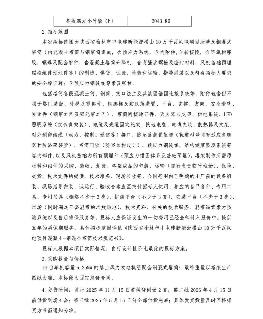 新能源圈获悉,近日中国招标投标电子商务平台发布三条招标信息。根据招标文件显示,三个项目合计规模400MW,涉及52台风机招标。 三个项目分别位于黑龙江五大连池、甘肃张掖和陕西榆林。 三个项目中,黑龙江五大连池的风电项目涉及总承包工程的招标,甘肃黑河润电平山湖10万千瓦风电项目,主要是风电机组(含塔筒)采购,陕西榆林的中国电建横山10万千瓦风电项目,则涉及混合塔筒和附属设备采购。