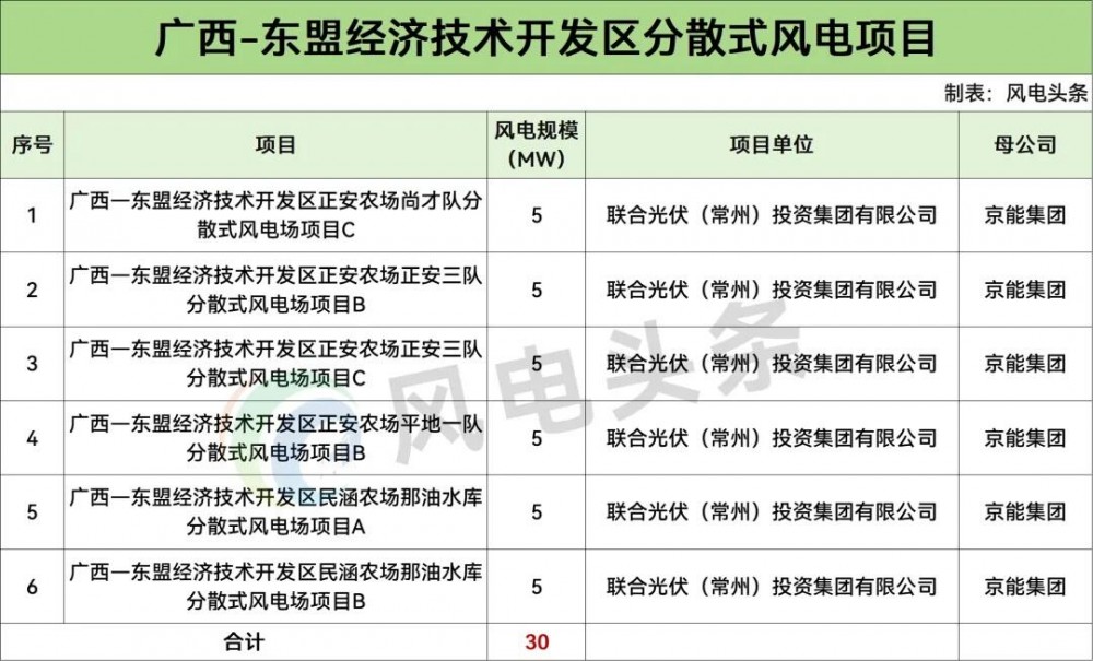 8 月 18 日,广西 - 东盟经济技术开发区公示 2025 年分散式风电建设项目,拟建设广西-东盟经济技术开发区正安农场尚才队分散式风电场项目 C 等 6 个项目,总容量 30MW,已纳入《南宁市分散式风电规划项目清单》。