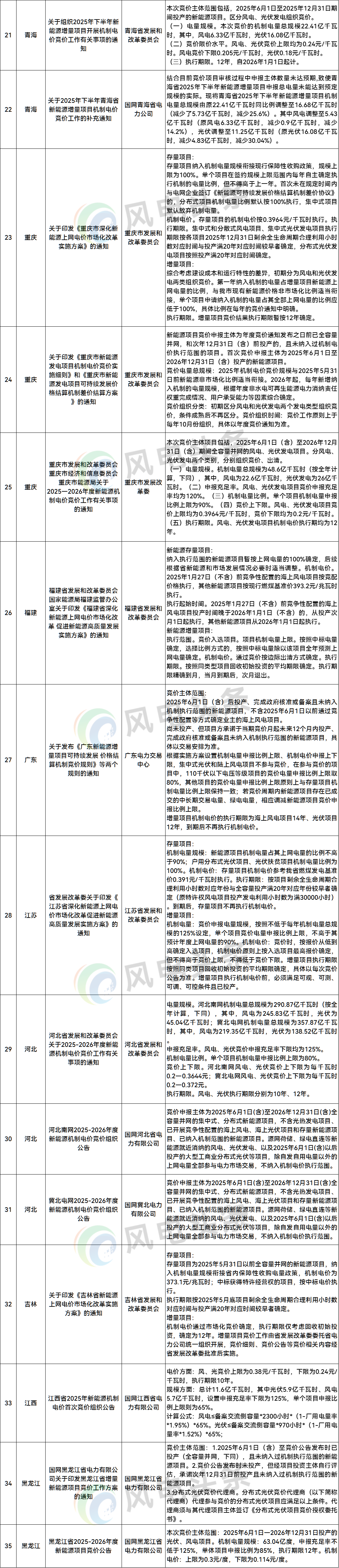 上海、陕西等3个地方下发相关文件。上海发布关于增补和调整2025年陆上风电、光伏电站开发建设方案的通知;陕西发布关于调整2022-2024年度保障性并网新能源项目核准(备案)和并网时限的通知;宁夏固原市废止55MW风电项目。