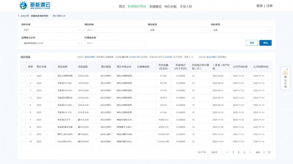 此外,10月29日,国网新能源云发布关于2025年下半年青海省新能源增量项目机制电价竞价工作的补充通知。
