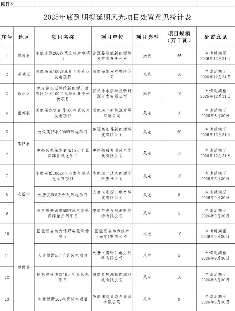 附件3-2025年底到期拟延期风光项目处置意见统计表.xls