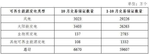 2025年10月,全国交易绿证6670万个,其中绿色电力交易绿证2299万个。2025年1-10月,全国交易绿证5.96亿个,其中绿色电力交易绿证2.02亿个。