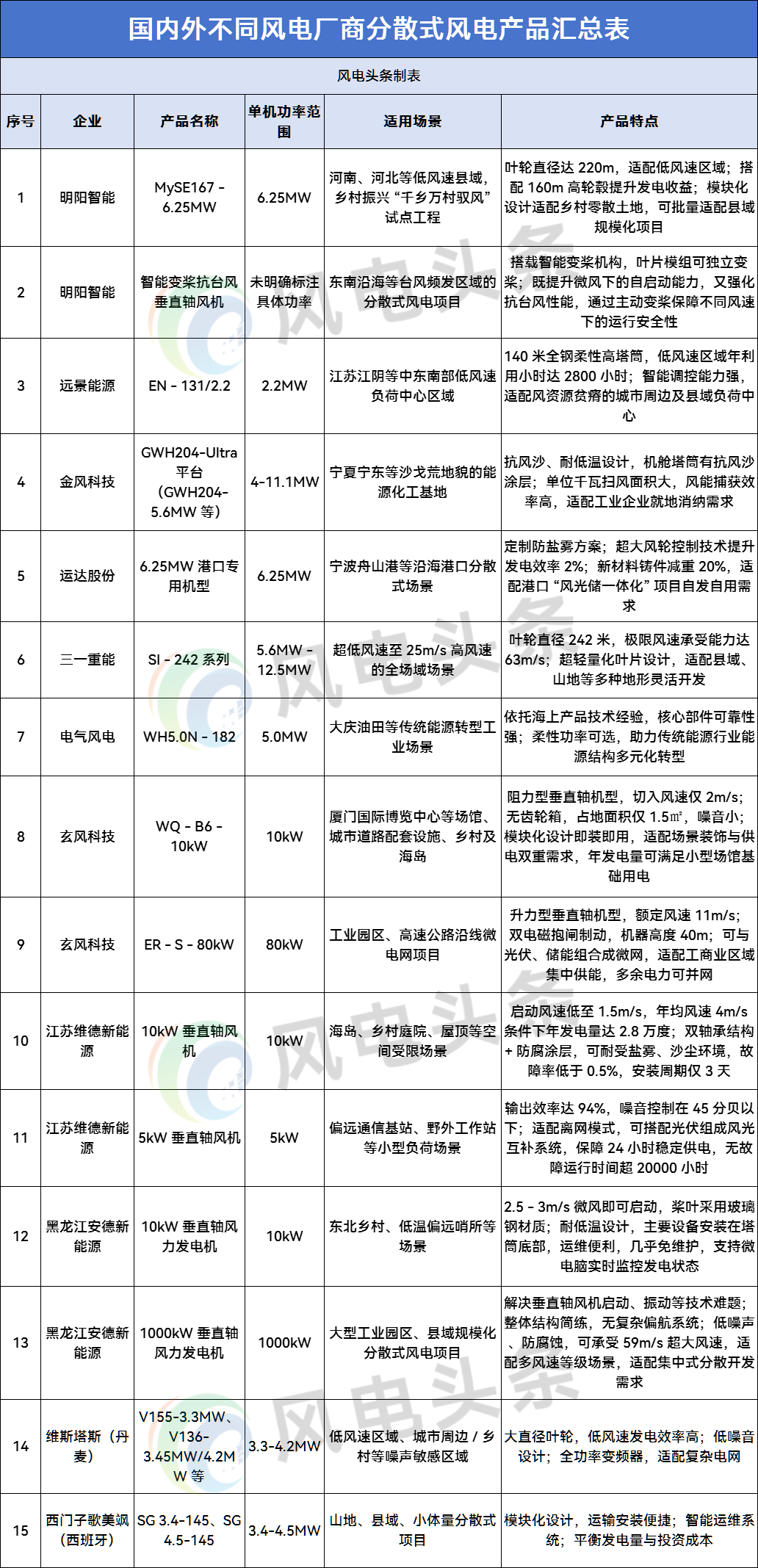 因此,这类风机不需要单机功率有多高,主打要轻便、占地空间小、运维简单和低噪音污染更重要。