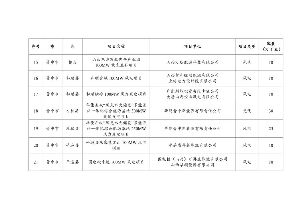 根据《山西省能源局关于印发〈山西省2025年风电、光伏发电开发建设竞争性配置工作方案〉的通知》(晋能源新能源发〔2025〕110号),省能源局组织开展了2025年风电、光伏发电开发建设竞争性配置有关工作,经申报、评审和公示,现下达山西省2025年风电、光伏发电保障性并网年度建设计划,共23个项目、总规模335万千瓦,有关事项通知如下: