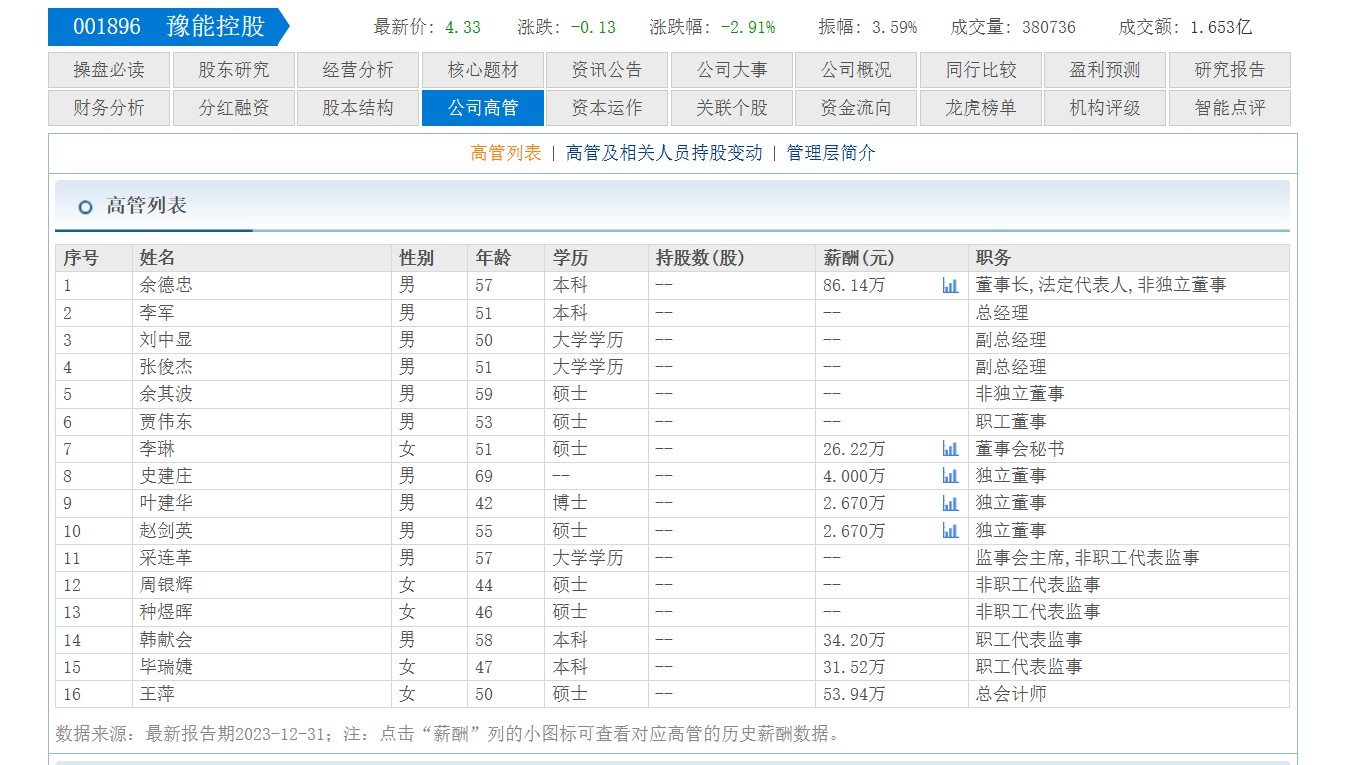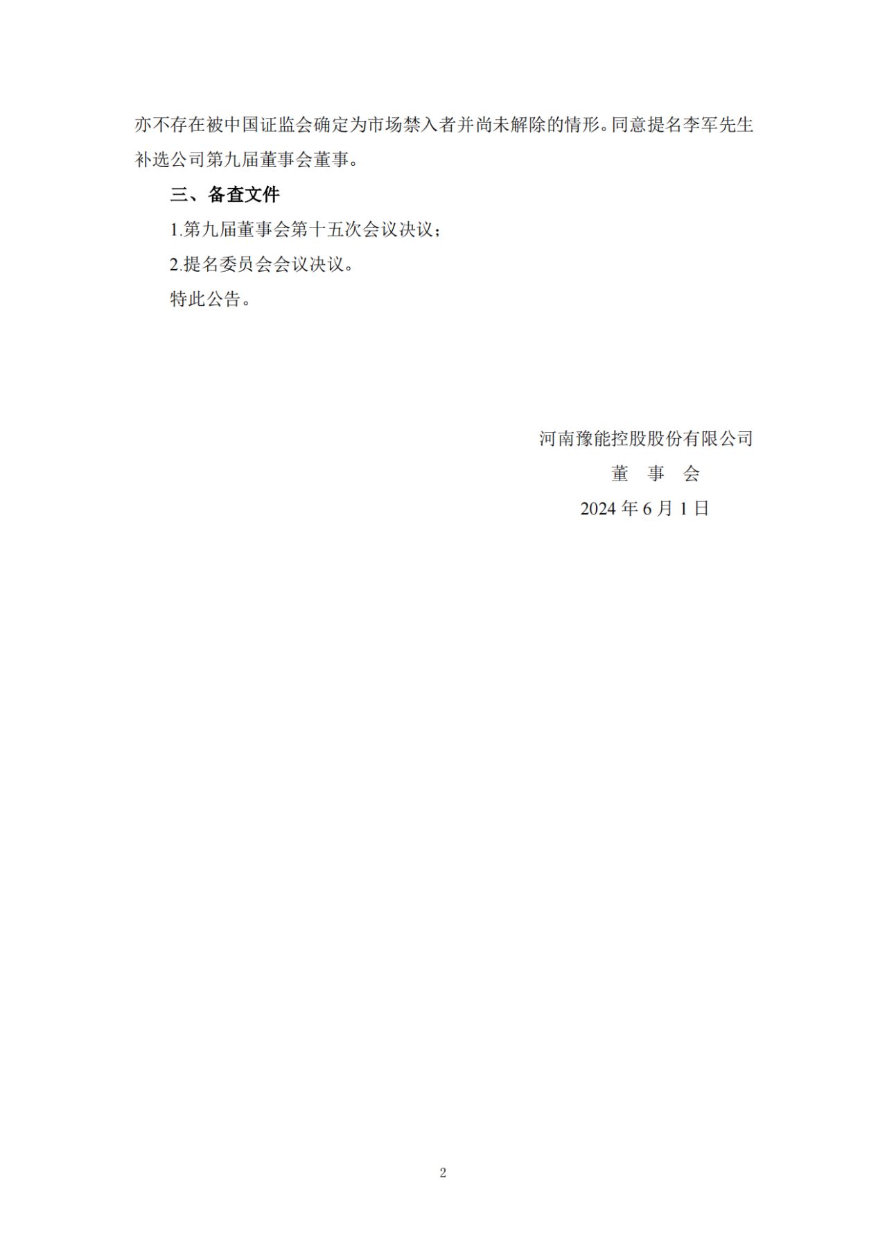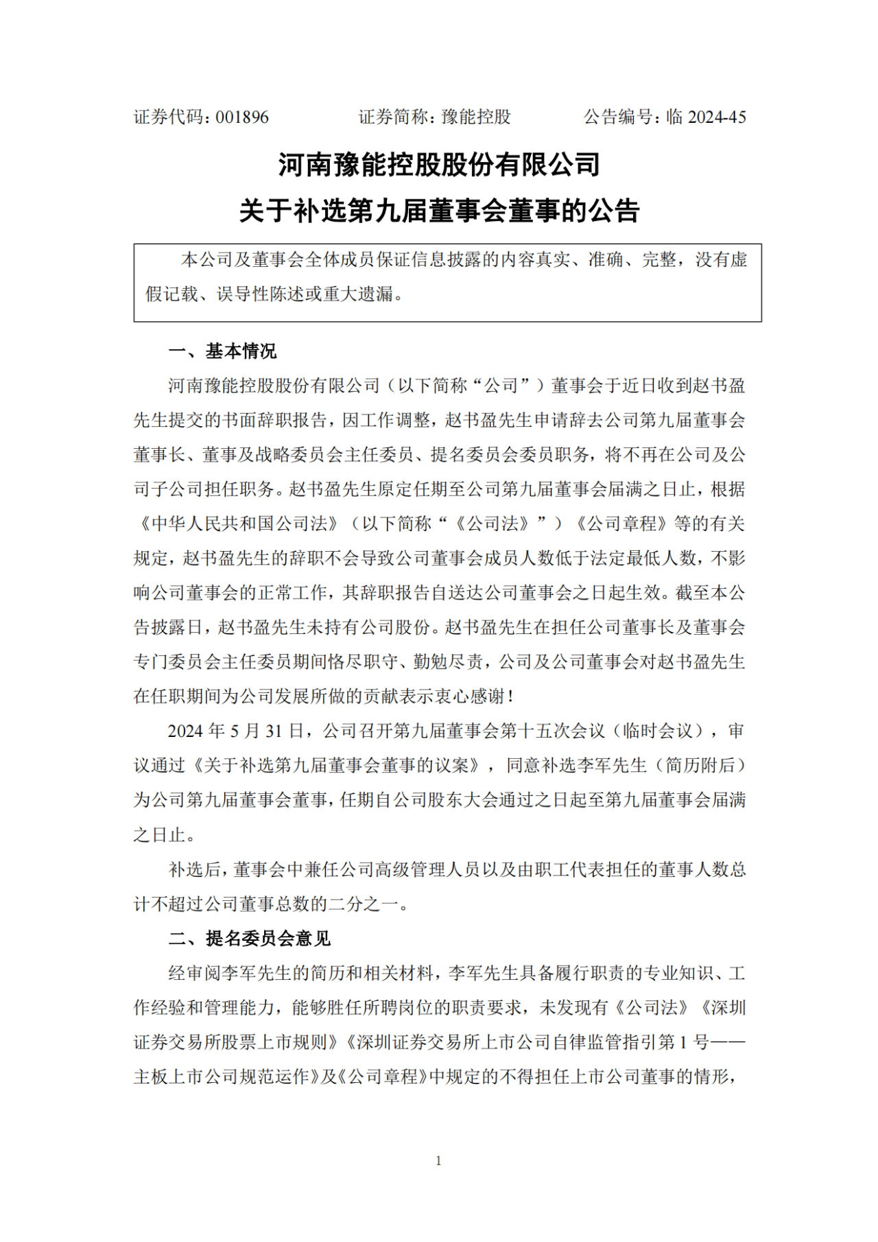 2024-04-30 近日,豫能控股公布《关于变更公司董事长、法定代表人的公告》《关于补选第九届董事会董事的公告》《关于变更公司总经理的公告》。