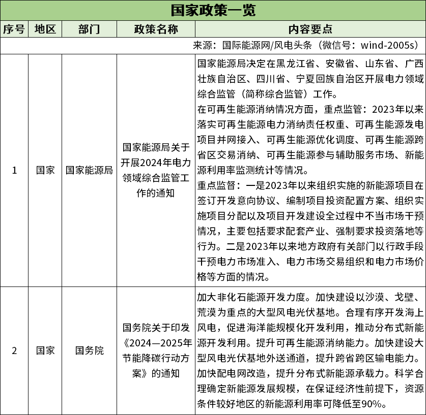 还值得注意的是,国务院发布关于《2024—2025年节能降碳行动方案》的通知,文件指出,加快建设以沙漠、戈壁、荒漠为重点的大型风电光伏基地。合理有序开发海上风电。同时,加快建设大型风电光伏基地外送通道,提升跨省跨区输电能力。