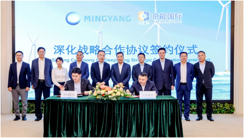 会议最后,双方签署《战略合作框架协议》。根据协议,双方将充分发挥各自优势,围绕境内外新能源项目开发与建设、海上风电项目拓展、风光储氢一体化项目开发建设等领域 开展全方位的深度战略合作,打造多赢、可持续发展的长期战略合作伙伴关系。