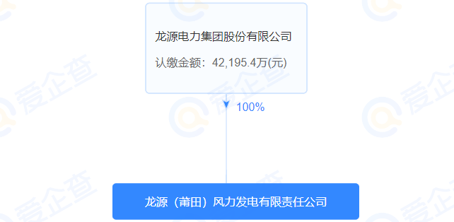 企业工商信息显示,龙源(莆田)风力发电有限责任公司成立于2009年7月7日,经营范围包括:许可项目:发电业务、输电业务、供(配)电业务。一般项目:风力发电技术服务;新兴能源技术研发;技术服务、技术开发、技术咨询、技术交流、技术转让、技术推广。该企业由龙源电力集团股份有限公司100%持股。