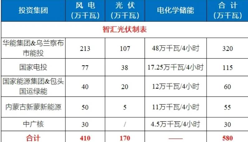 投资主体:北方联合电力有限责任公司、乌兰察布市能源投资开发有限责任公司;
