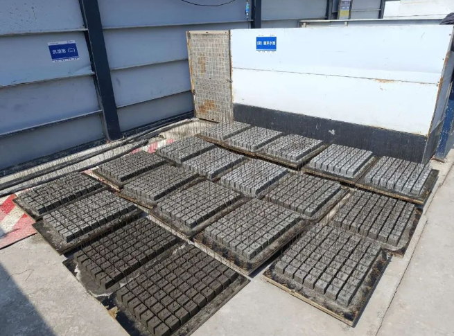 工人们使用我时,只需按实验室审批的配合比操作,砂浆便经过我的各个制作模块,一会儿传送带上便得到了制作好的垫块。整个成型过程简单、高效、成型质量还好。