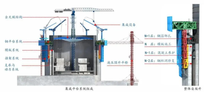 整体自爬升、多层作业面