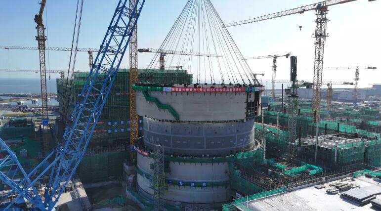 10月13日15时58分,徐大堡核电厂1号机组屏蔽墙厂房SC结构6-8层模块吊装就位,标志着1号机组核" />