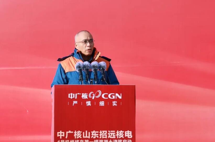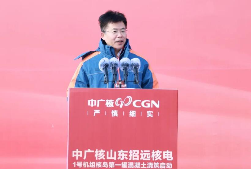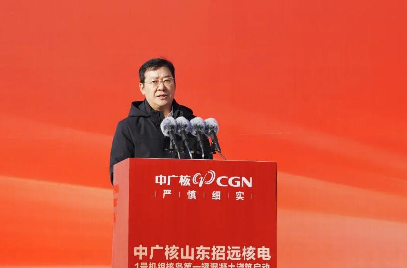 庞松涛代表集团公司对项目建设全面启动表示祝贺,对国家相关部委、山东省各级党委和政府给予的指导支持,以及合作伙伴、一线建设者的辛勤付出表示感谢。他指出,作为中广核第十个核电基地,招远核电项目的高质量推进意义深远,不仅为集团“十四五”目标实现提供了有力支撑,为“十五五”开篇布局筑牢根基,更为山东加快构建新型能源体系注入强劲动力,为保障国家能源安全、实现“双碳”目标贡献中广核力量。