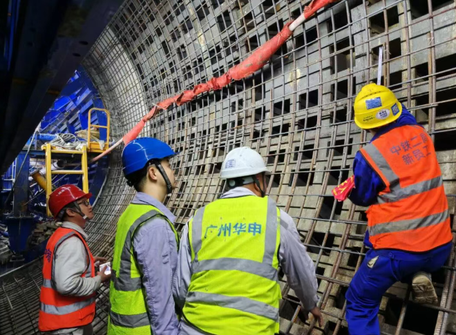 5、6号隧洞内衬结构采用圆形断面设计,分别长约2433米、2460米,外直径6.0米,内直径5.5米,厚度0.25 米。陆丰核电联合中铁二局、工程公司和华申监理组成海工施工大团队,创新性采用针梁式全圆模板台车进行现浇施工,自2024年12月31日完成第一模内衬结构施工以来,历经约11个月的奋战,最终圆满完成全部施工任务。