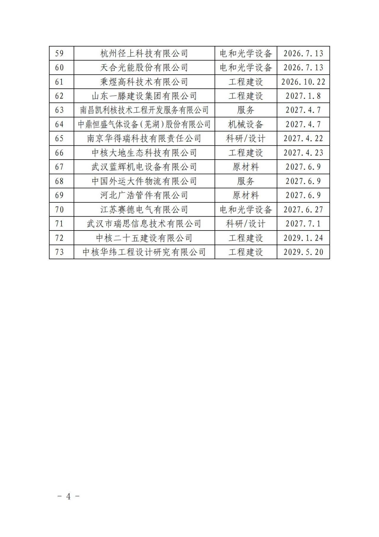 2024-04-30 据新能源圈了解到,5月15日,中国核能行业协会发布第二十九批核能行业合格供应商名录的公告,共73个核能行业合格供应商,详情如下:
