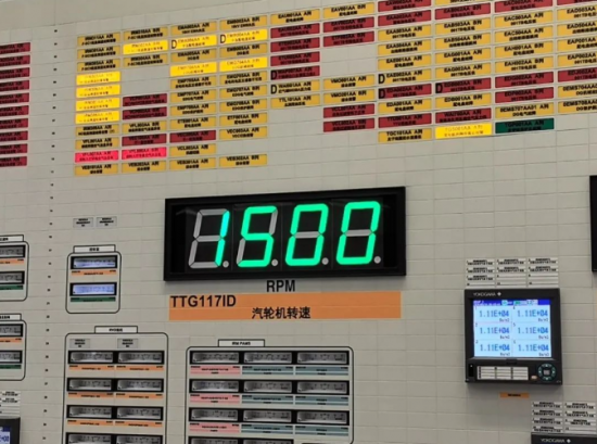 2024年5月16日6时41分,中核工程漳州核电1号汽轮发电机组首次冲转至1500rpm并稳定运行;6时47分,汽轮发电机组手动打闸停机开始惰转;9时05分,达到盘车转速并盘车自动投入。经主控和现场检查确认,汽轮发电机组缸体上下温差、轴承振动、轴瓦振动、轴瓦温度、轴向位移、胀差等关键技术指标均满足验收标准,漳州核电1号汽轮发电机组非核蒸汽冲转试验一次成功!