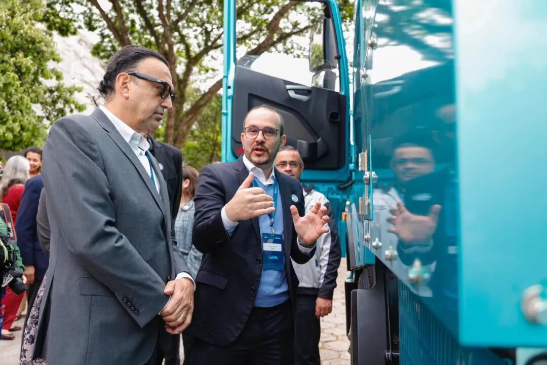 活动现场,由未势能源提供核心动力系统的氢能重卡亮相现场,圣保罗州副州长Felicio Ramuth参观并体验氢能重卡,并对这一技术成果表示高度赞赏。