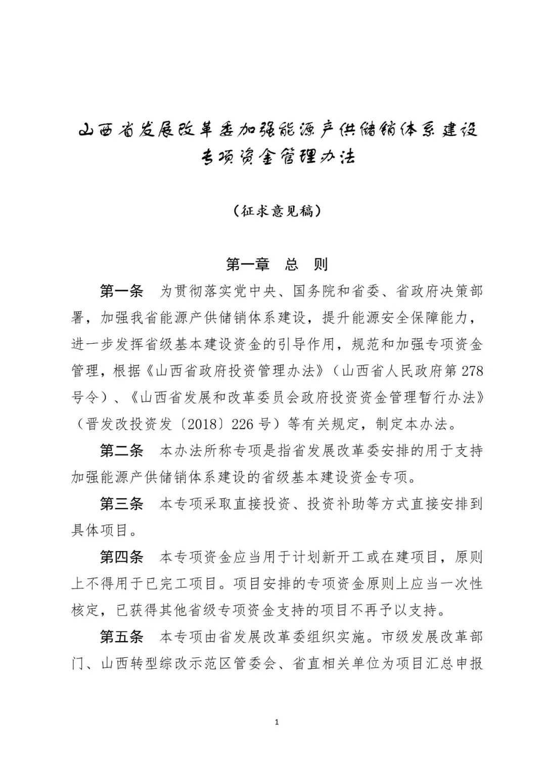 新能源圈获悉,10月21日,山西省发展和改革委员会发布关于对《山西省发展改革委加强能源产供储销体系建设专项资金管理的办法》公开征求意见的公告。