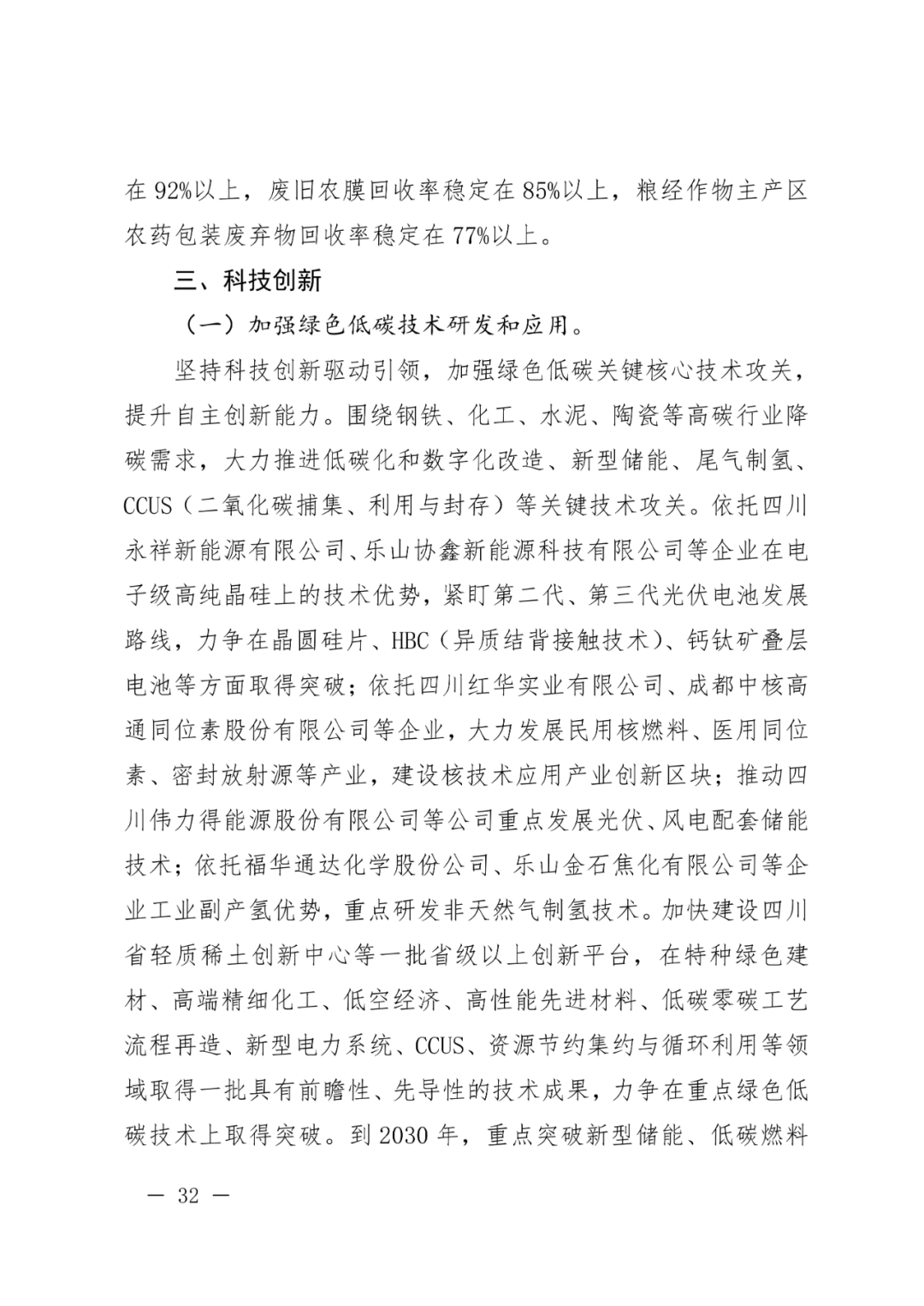 围绕钢铁、化工、水泥、陶瓷等高碳行业降碳需求,大力推进低碳化和数字化改造、新型储能、尾气制氢、CCUS(二氧化碳捕集、利用与封存)等关键技术攻关。依托福华通达化学股份公司、乐山金石焦化有限公司等企业工业副产氢优势,重点研发非天然气制氢技术。