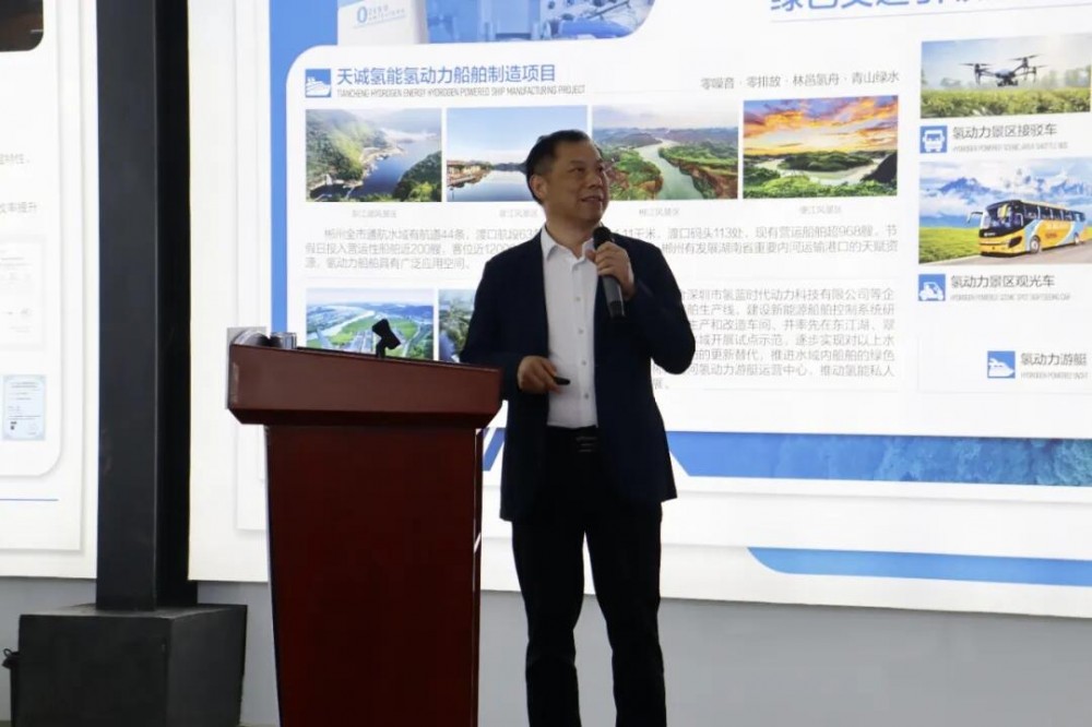 湖南天诚氢能董事长陈建新分享了《郴州泛氢能的实践与创新应用》,结合天诚氢能的本土实践,展示了氢能技术在县域层面的落地成效。