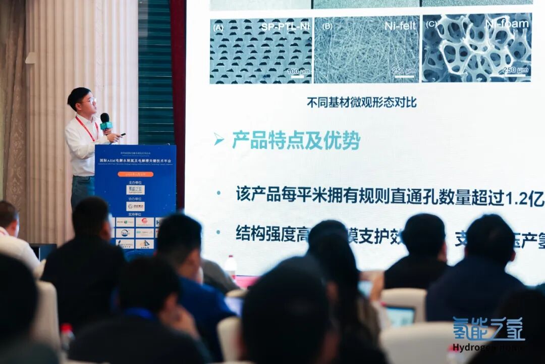 会上,CTO谢周兵发表《AEM电解槽核心器件国产化降本方案》演讲,深入剖析了当前 AEM 电解水制氢技术的发展现状与挑战,并分享了公司在技术创新与降本道路上的探索与实践。