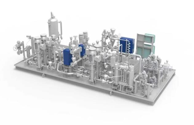 齐耀环保自主研制的甲醇燃料供给系统涉及加注、驳运、储存、供给撬块以及部分辅助系统,涵盖了甲醇燃料自加注到使用到吹扫的全流程。作为核心子系统,该甲醇燃料供给撬块不仅保障了进入主机的甲醇始终处于合适的压力和温度范围内,还能在主机负荷变化时,将压力波动稳定控制在主机要求以内,确保动力系统高效平稳运行。