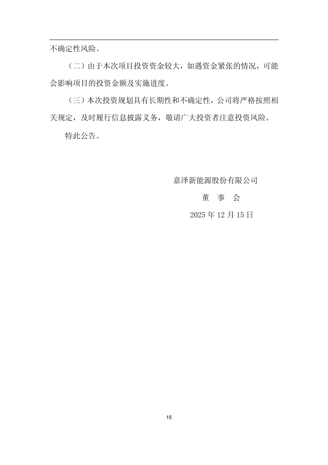 嘉泽新能于2025年12月12日召开了三届四十七次董事会,审议通过了《关于下属公司投资建设黑龙江省鸡西市鸡东县30万吨绿氢醇航油化工联产项目的议案》,尚需公司股东会审议批准。