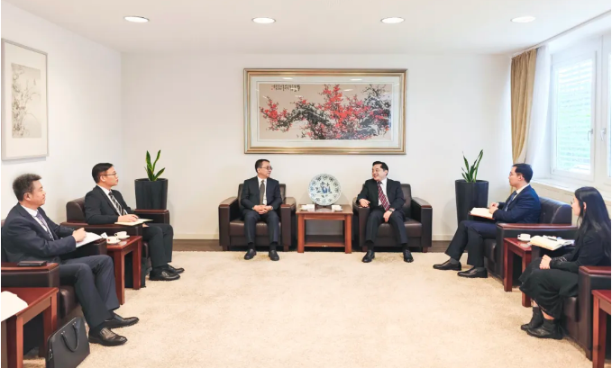 当日下午,邹磊拜访了我国驻杜塞尔多夫总领馆,与总领事杜春国就中国大唐对德开展合作和商务往来进行了友好交流。