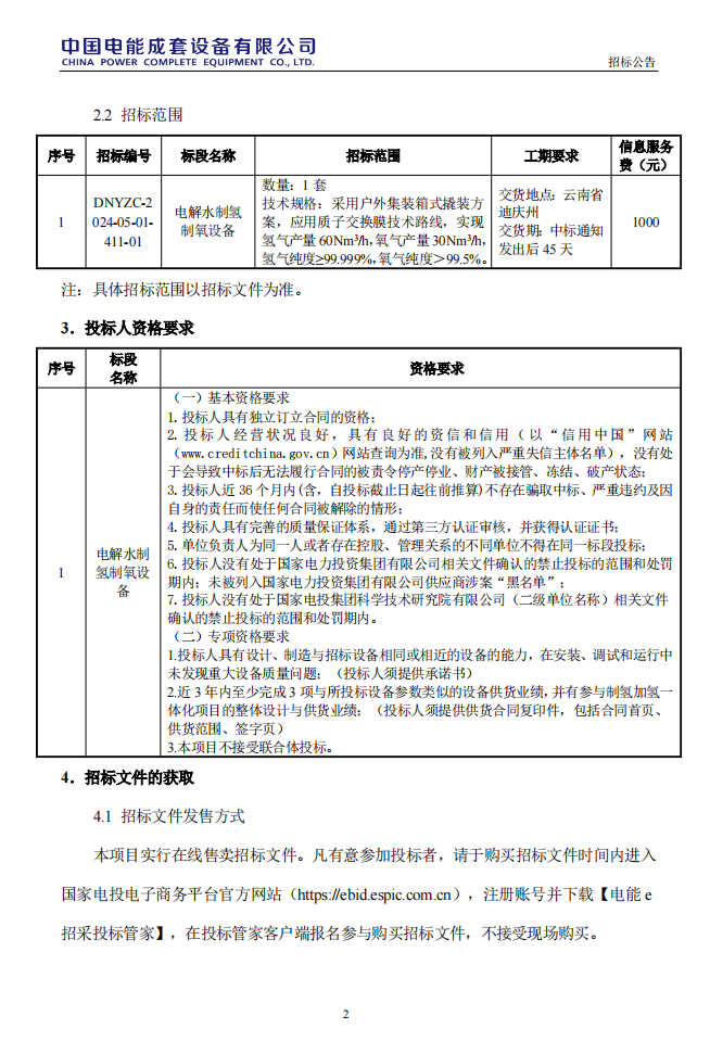 据悉,该公告内容明确指出,招标人为国家电投集团科学技术研究院有限公司,采购需求包括1套电解水制氢制氧设备,采用户外集装箱式撬装方案,应用质子交换膜技术路线,实现氢气产量60Nm3/h,氧气产量30Nm3/h,氢气纯度≥99.999%,氧气纯度>99.5%。
