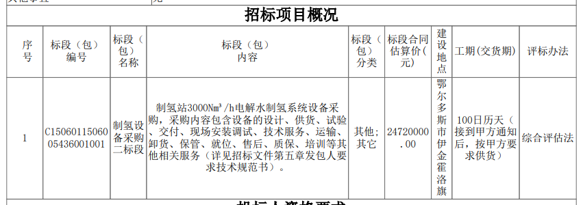 目前因为这次两个标段加起来是9000Nm³/h,另外还有3000Nm³/h的电解设备等待招标。
