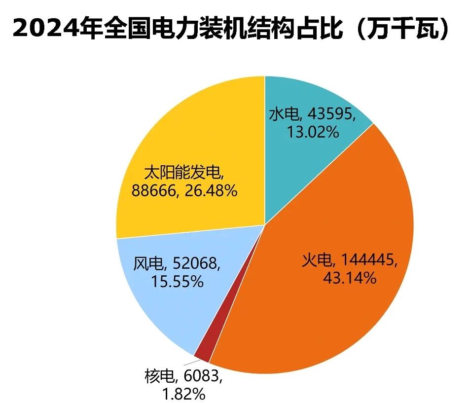 2024年,全国非化石能源发电装机占比历史性地达到56.86%,首次超越火电装机,标志着中国电力系统结构优化取得实质性突破。