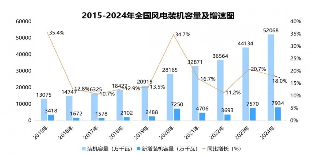 风电:保持强劲增长势头,2024年末全国并网风电累计装机容量达5.2亿千瓦,同比增长18%,已成为仅次于煤电的第二大电源。