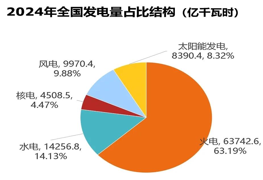 电力生产方面,2024年,中国国清洁能源发电量为3.7万亿千瓦时,占总发电量的36.81%,清洁电力贡献持续加大。