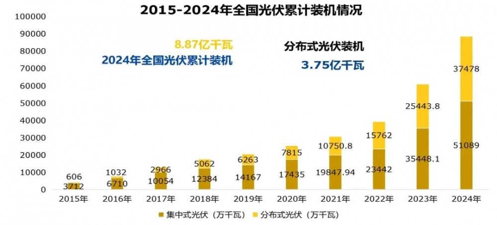 累计装机容量飙升至8.87亿千瓦,同比大增45.2%(其中集中式5.11亿千瓦,分布式3.75亿千瓦),无论是增量还是总量均领跑全球,分布式光伏的蓬勃发展尤为亮眼。