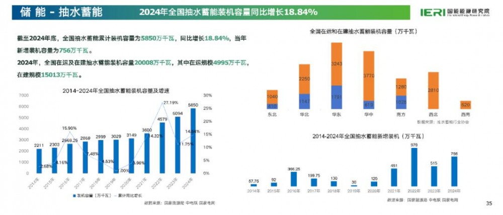 在抽水蓄能方面,截至2024年底,全国累计装机容量达5850万千瓦,同比增长18.84%,当年新增装机容量756万千瓦,建设步伐加快。