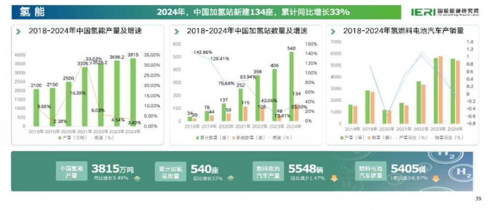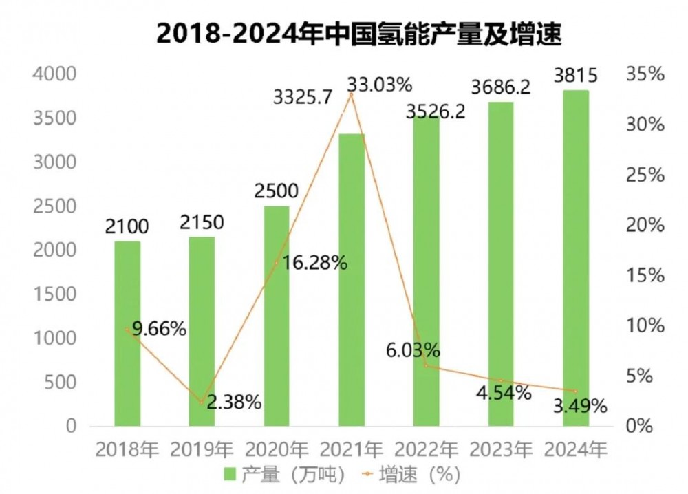 氢能:2024年,中国氢能产量3815万吨,同比增长3.49%。