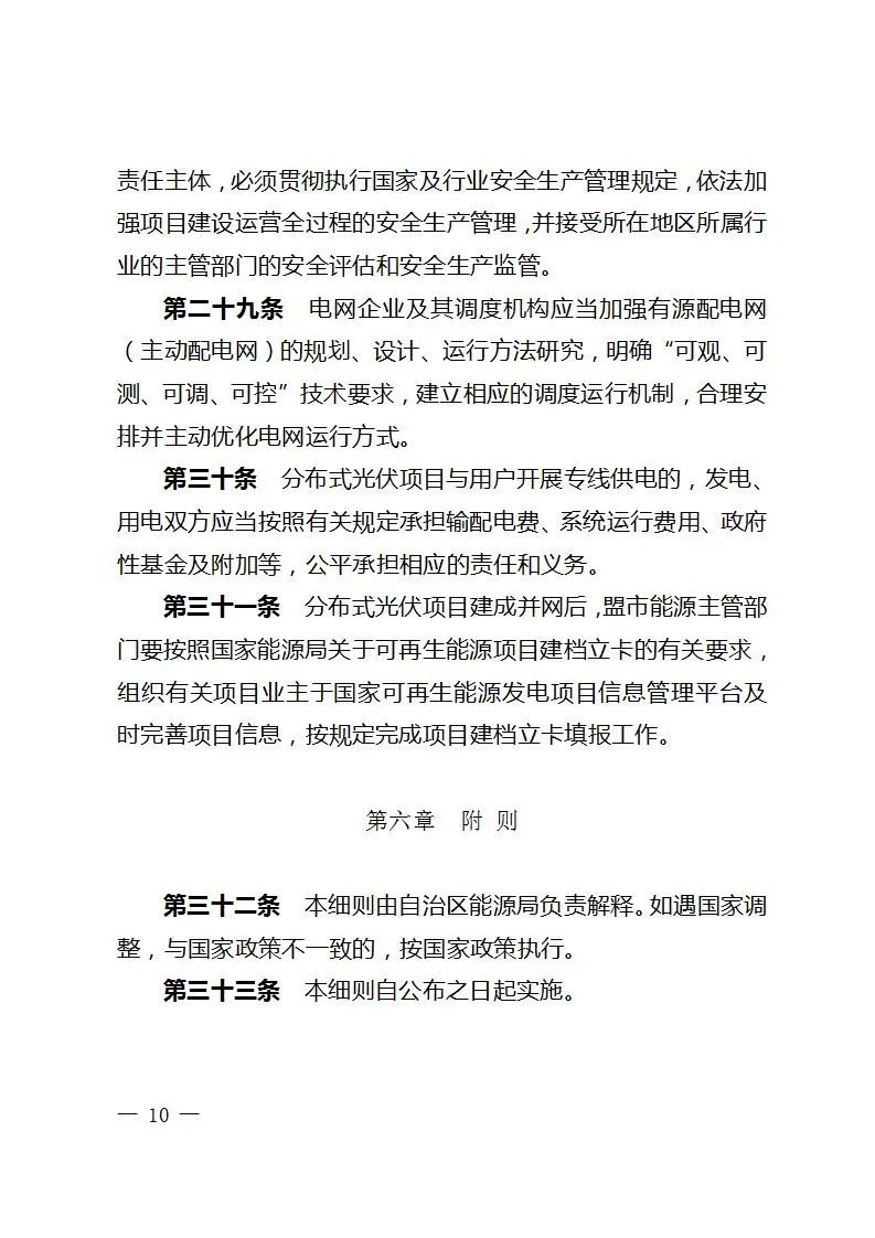 为落实好国家分布式光伏开发管理政策及自治区能源领域简政放权有关要求,进一步规范全区分布式光伏开发和管理,自治区能源局结合全区分布式光伏发展实际,制定了《内蒙古自治区分布式光伏项目开发建设管理实施细则》,现印发你们,请认真执行。