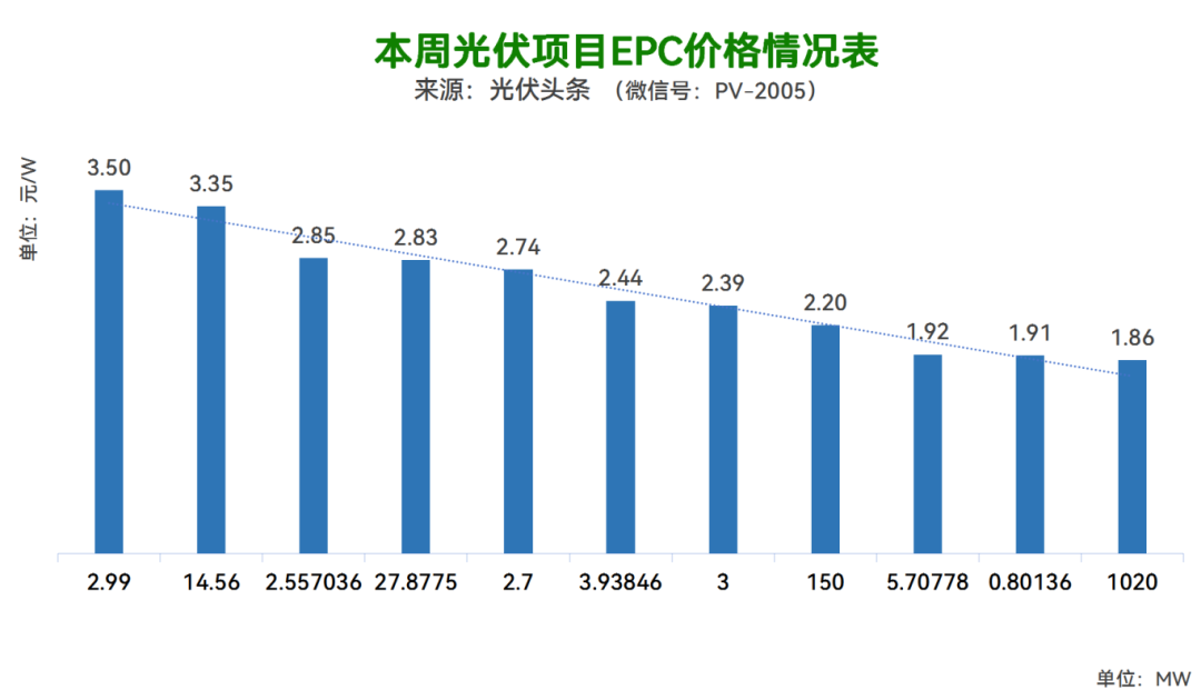 本周分布式大EPC均价为2.61元/W,集中式大EPC价格为1.86元/W。