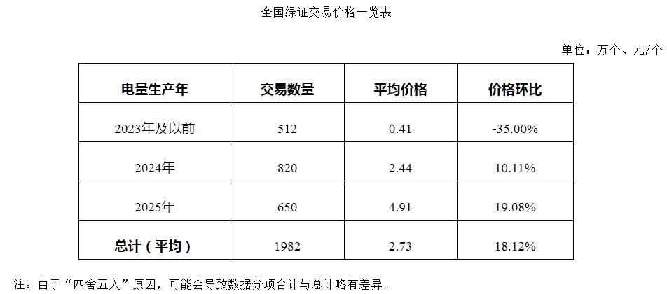2025年5月,全国绿证单独交易1982万个,交易平均价格为2.73元/个,环比增长18.12%。