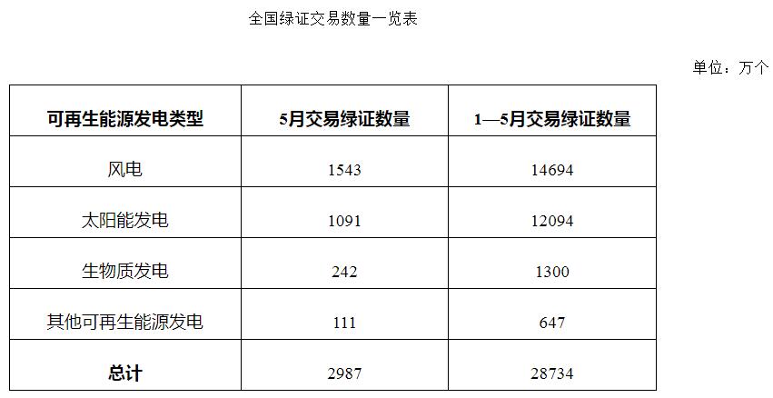 2025年5月,全国交易绿证2987万个,其中绿色电力交易绿证1005万个。2025年1-5月,全国交易绿证2.87亿个,其中绿色电力交易绿证9623万个。(调减1-4月交易绿证数量168万个)