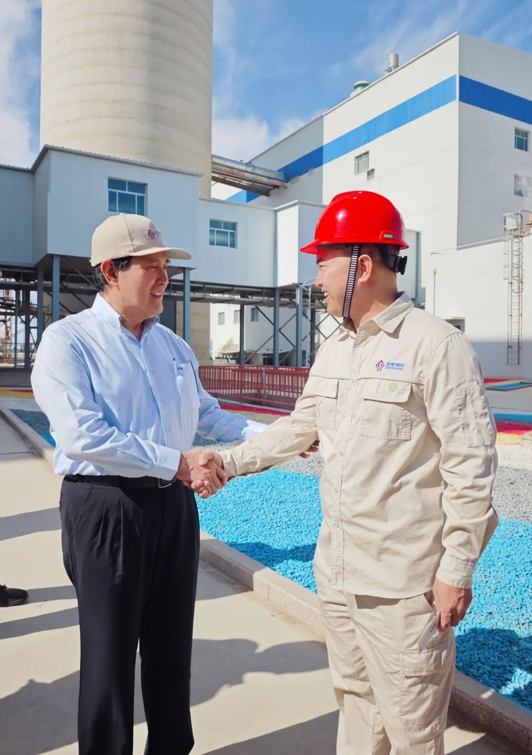 2025年6月27日,台湾前国民党主席马英九先生率领“大九学堂”台湾青年一行到访首航高科敦煌光热电站,深入了解公司在太阳能光热发电领域的创新实践与发展成果。由首航高科董事长黄文博与敦煌公司副总经理张宏伟热情接待了来访团体。