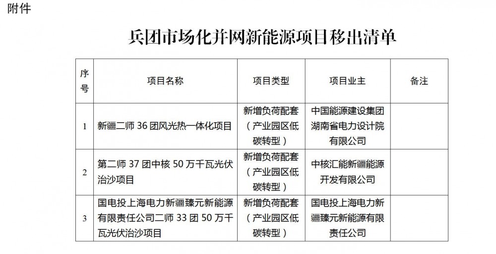 附件:兵团市场化并网新能源项目移出清单