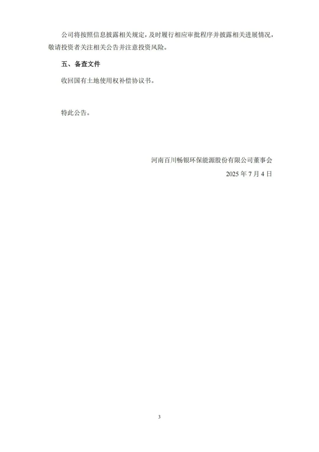 公告表示,河南百川畅银环保能源股份有限公司(以下简称“公司”)于2023年8月27日召开第三届董事会第十五次会议及第三届监事会第十二次会议,于2023年9月12日召开2023年第三次临时股东大会,分别审议通过了《关于签署高效异质结电池项目合作协议暨对外投资的议案》。2023年9月12日,公司与湖州莫干山高新技术产业开发区管理委员会(以下简称“莫干山管委会”)签署了《高效异质结电池项目合作协议》,协议约定:公司拟在湖州莫干山高新技术产业开发区对年产4GW高效异质结电池项目固定资产投资约14亿元(最终投资总额以实际投资金额为准),建设8条高效异质结电池生产线,该项目建成达产后,项目子公司将具备年产4GW高效异质结电池的生产能力,项目分两期建设,一期建设2GW,投资金额约8亿元。