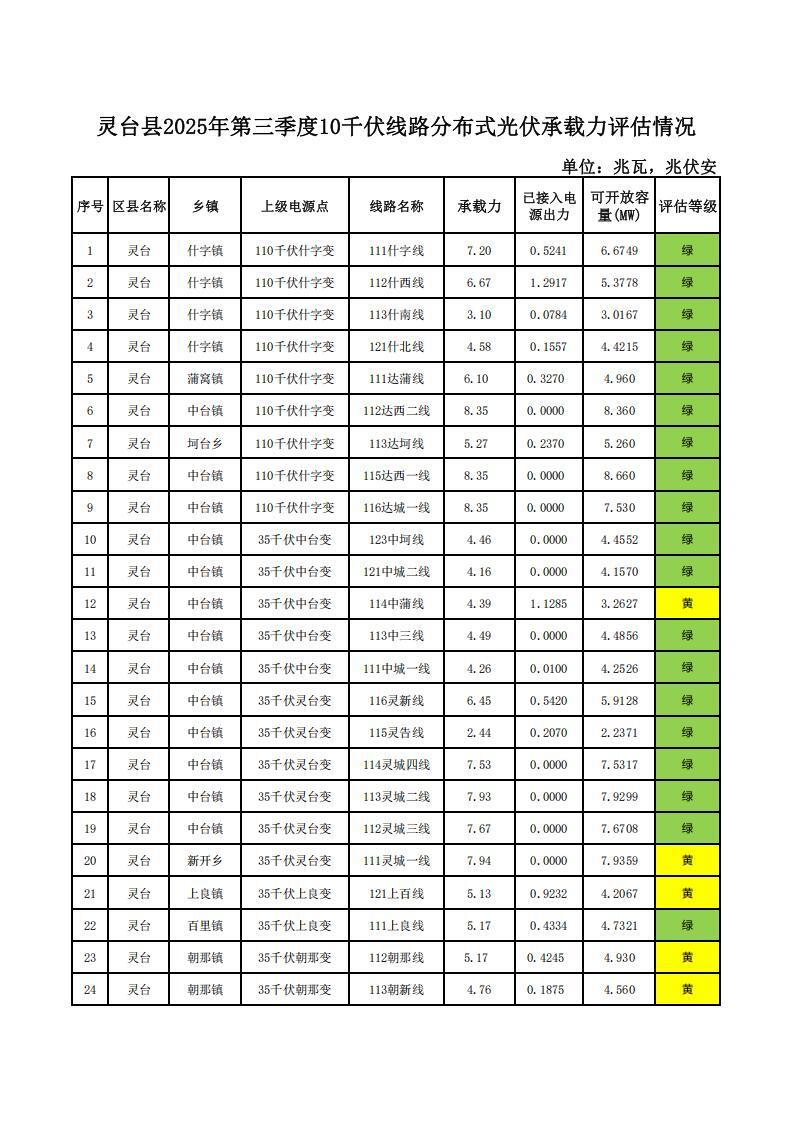 根据国家能源局《分布式光伏发电开发建设管理办法》(国能发新能规〔2025〕7号)文件要求,依据《分布式电源接入电网承载力评估导则》(DL_T2041-2019),现将2025年第三季度分布式光伏接入电网可开放容量相关数据向社会公开。