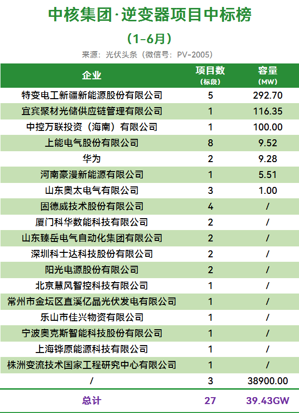 中核集团38.9GW逆变器项目定标;