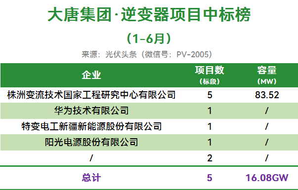 大唐集团有5个光伏逆变器招标项目定标,合计容量16.08GW。
