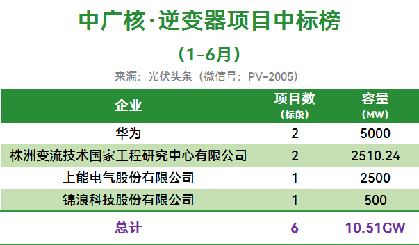 2025年,中广核有高达10.51GW光伏逆变器招标订单定标。华为、株洲变流、上能电气、锦浪科技成为最大赢家。